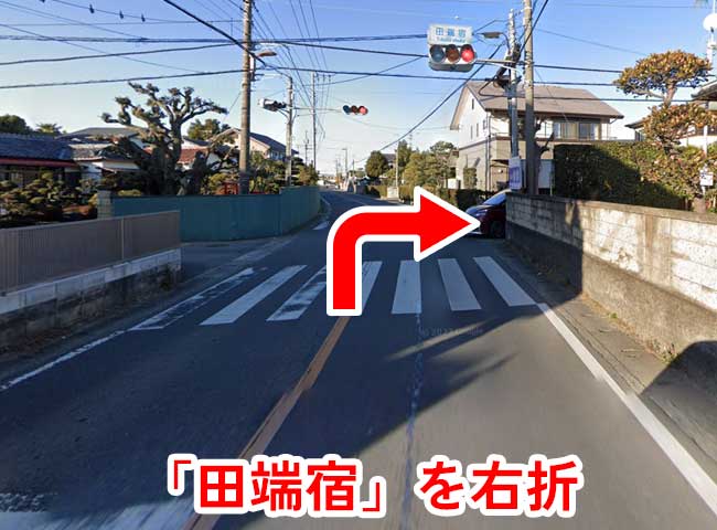 藤沢方面⇒「田端南」を左折⇒「田端宿」を右折